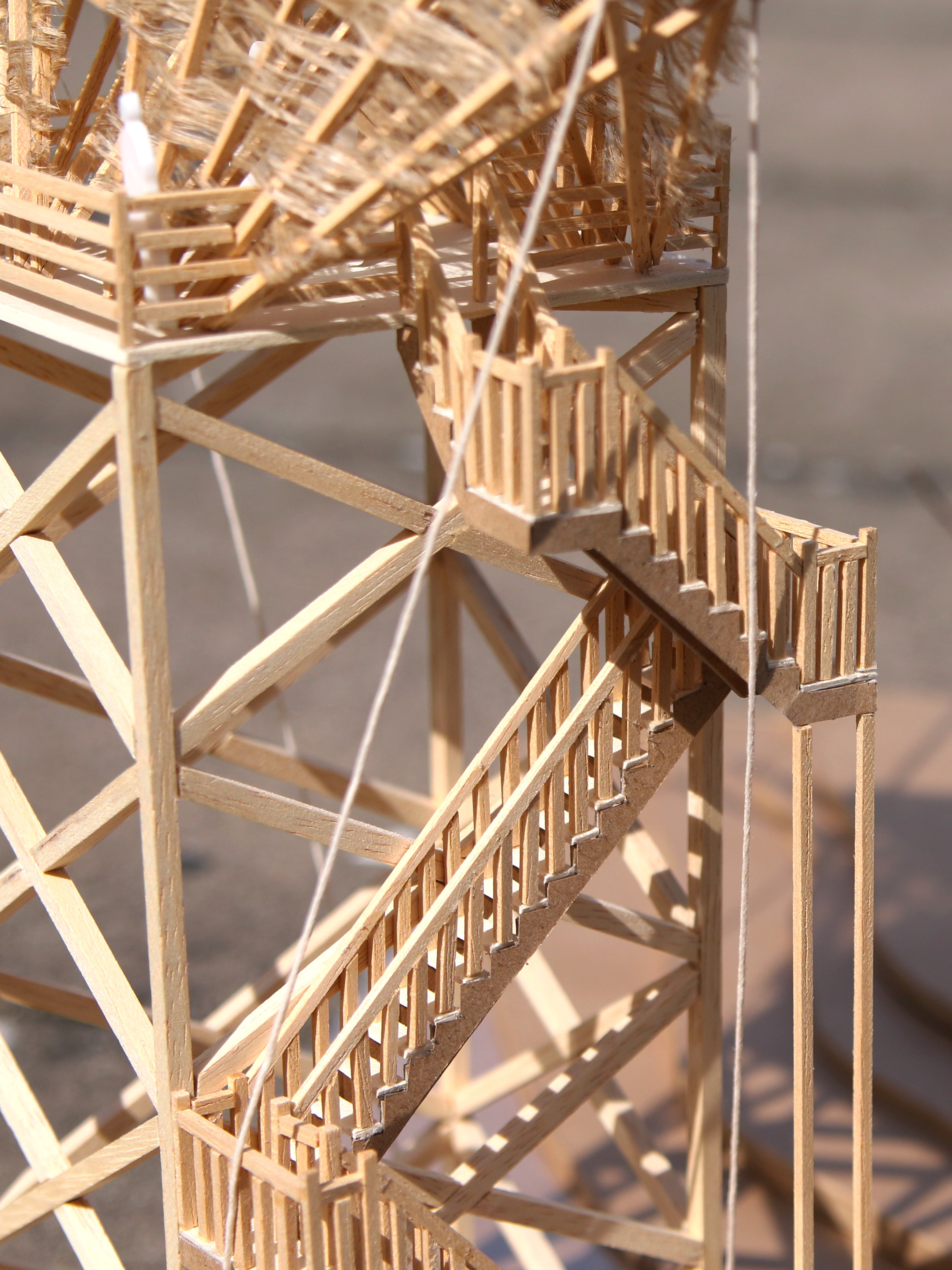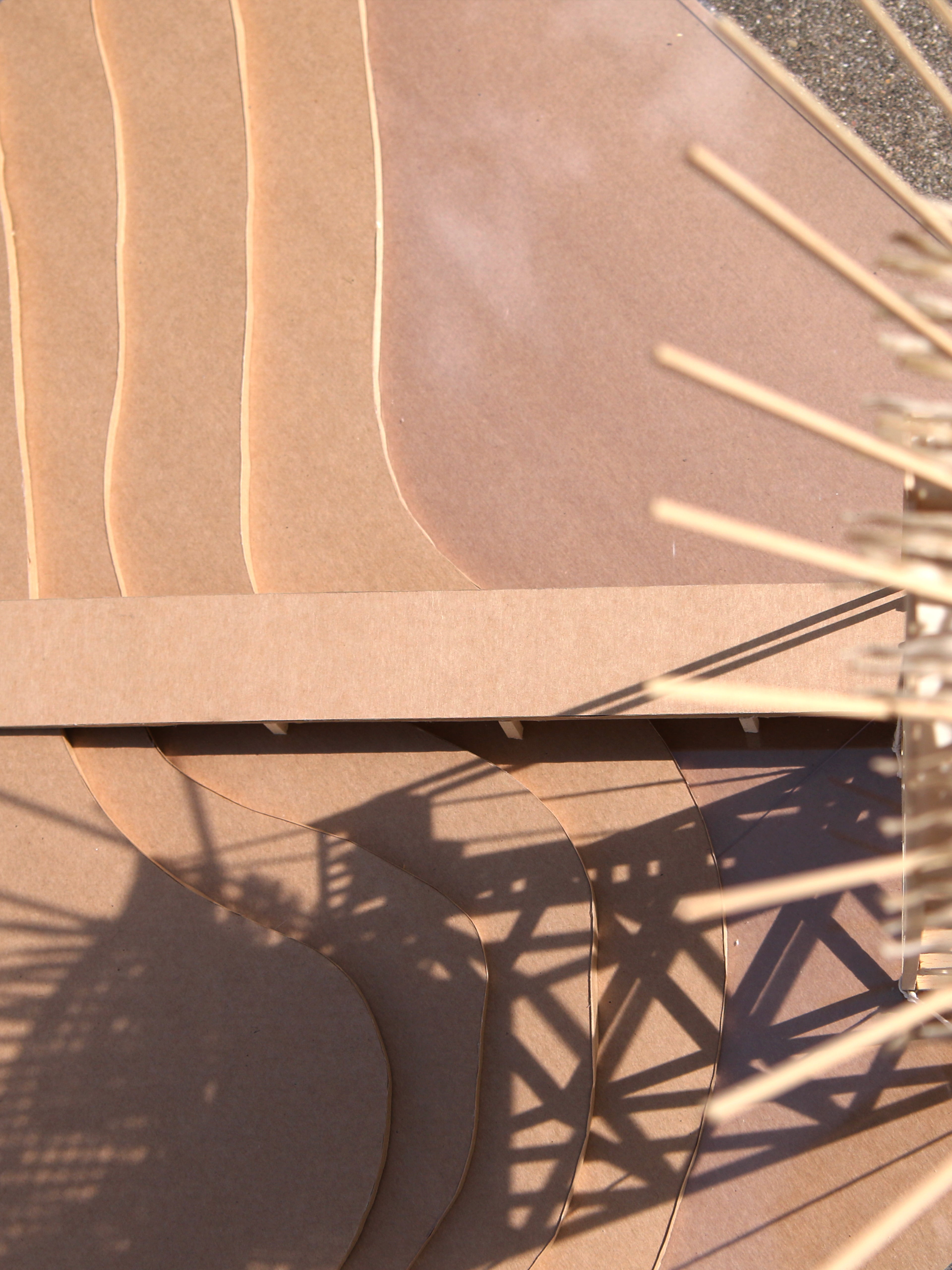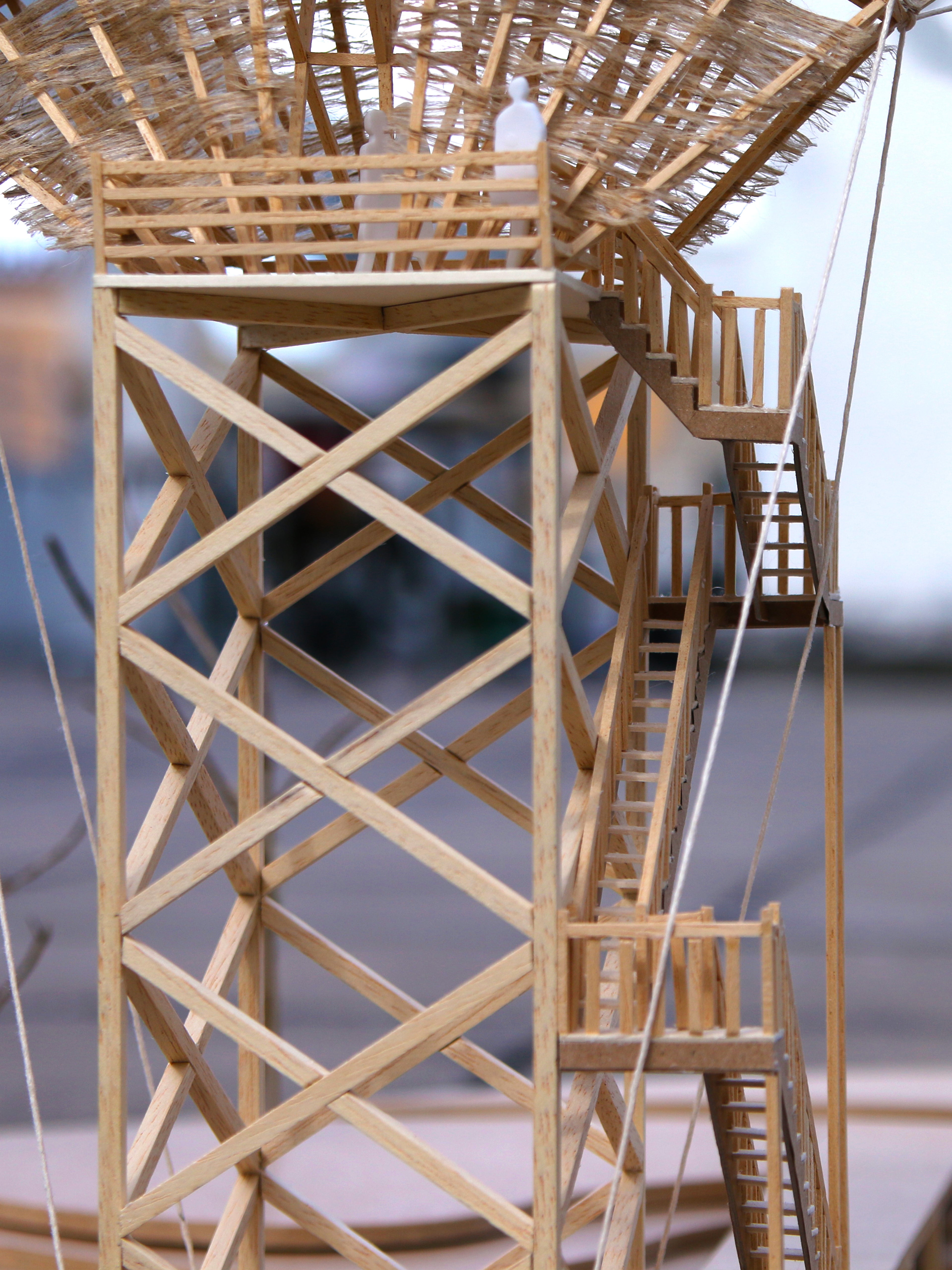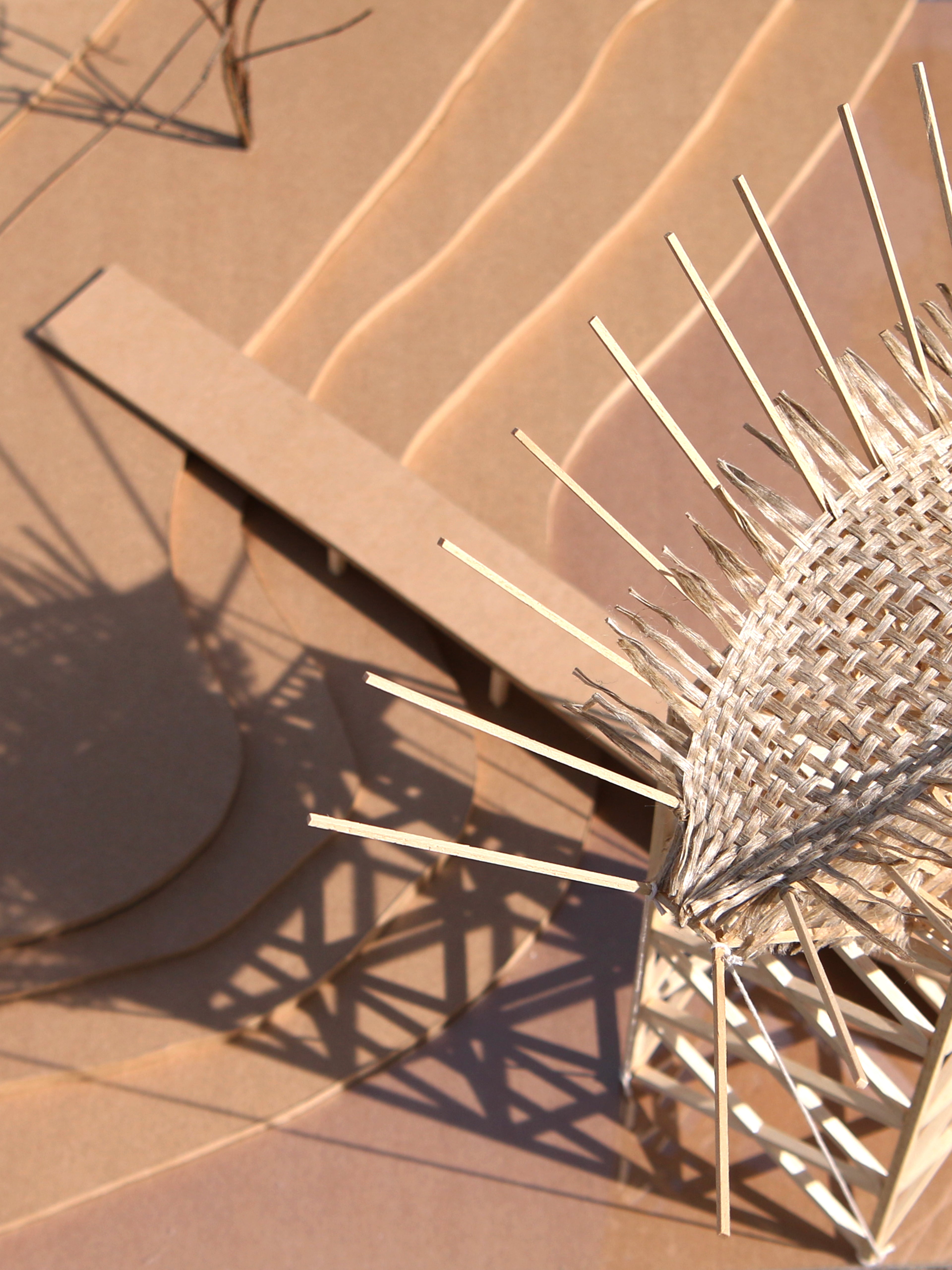 Cette maquette a été réalisée pour la représentation d'un projet architectural inspiré de la crinière d'un Grèbe esclavon, la dernière espèce d'oiseau arrivée sur la réserve ornithologique du Teich. Réalisée en bois et fibres naturelles, elle restitue fidèlement les volumes et les détails à l’échelle pour représenter l'idée avec précision et mettre en avant la structure qui est l'élément essentiel du projet.